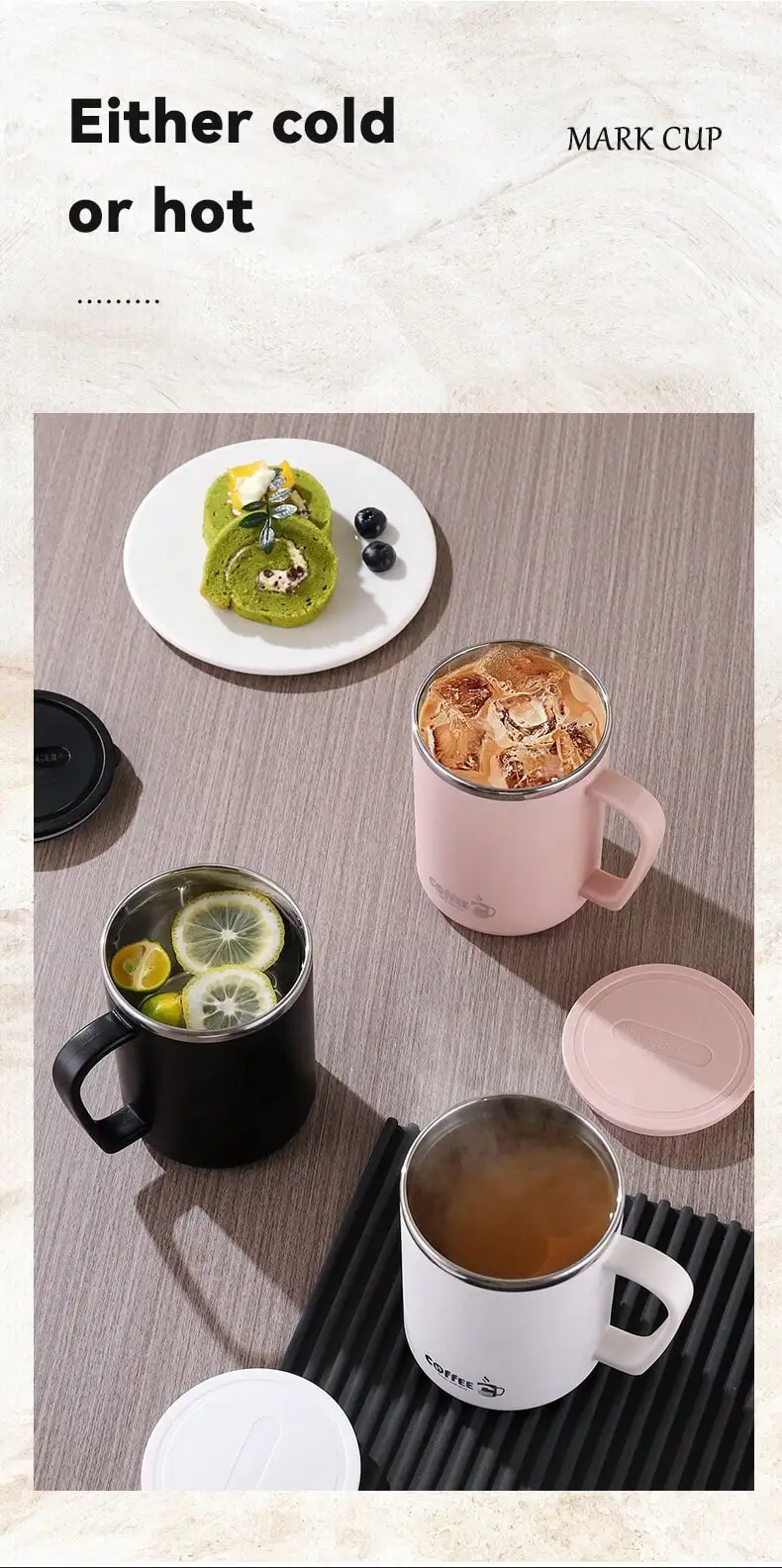 Experience temperature retention like never before with the WORTHBUY 480ml double-layer insulated coffee mug. Its design ensures your drinks stay hot or cold for longer periods.